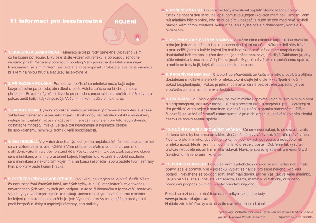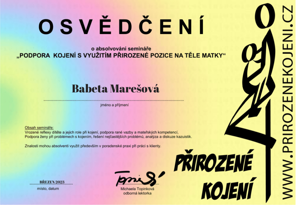 - Poradkyně se průběžně vzdělává, aby měla vždy aktuální informace a znalosti týkající se kojení.