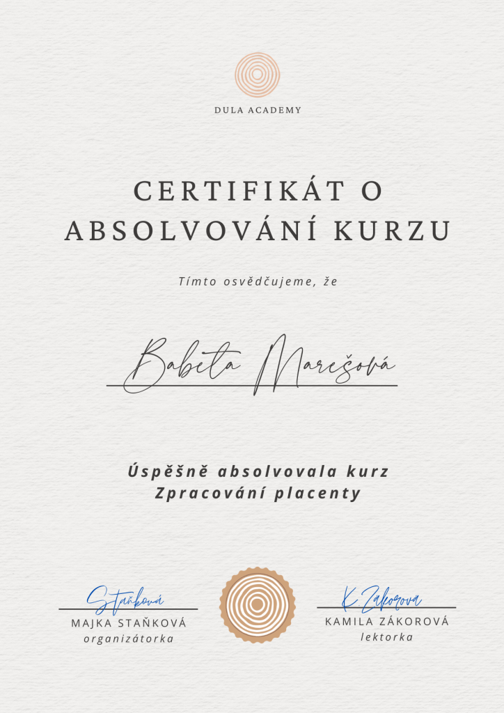 Po tomto uvědomění jsem se rozhodla absolvovat kurz pod křídly AmmaDula Akademie, kde jsem se certifikovala jako porodní dula.
